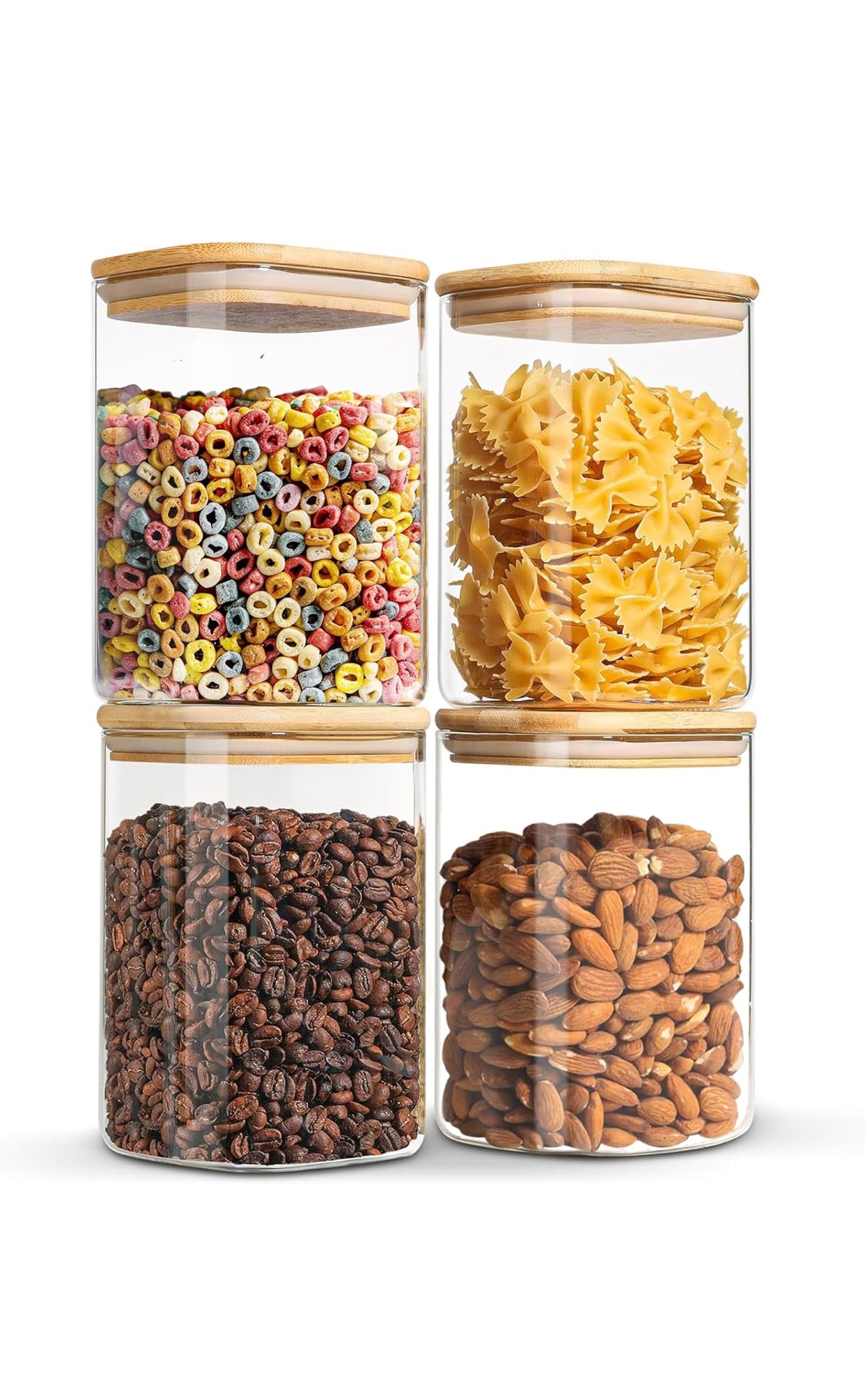 La combinación de vidrio y bambú le da a este tarro de frascos de vidrio herméticos un diseño atractivo y atemporal, que encaja perfectamente en cualquier decoración de cocina y añade elementos decorativos.