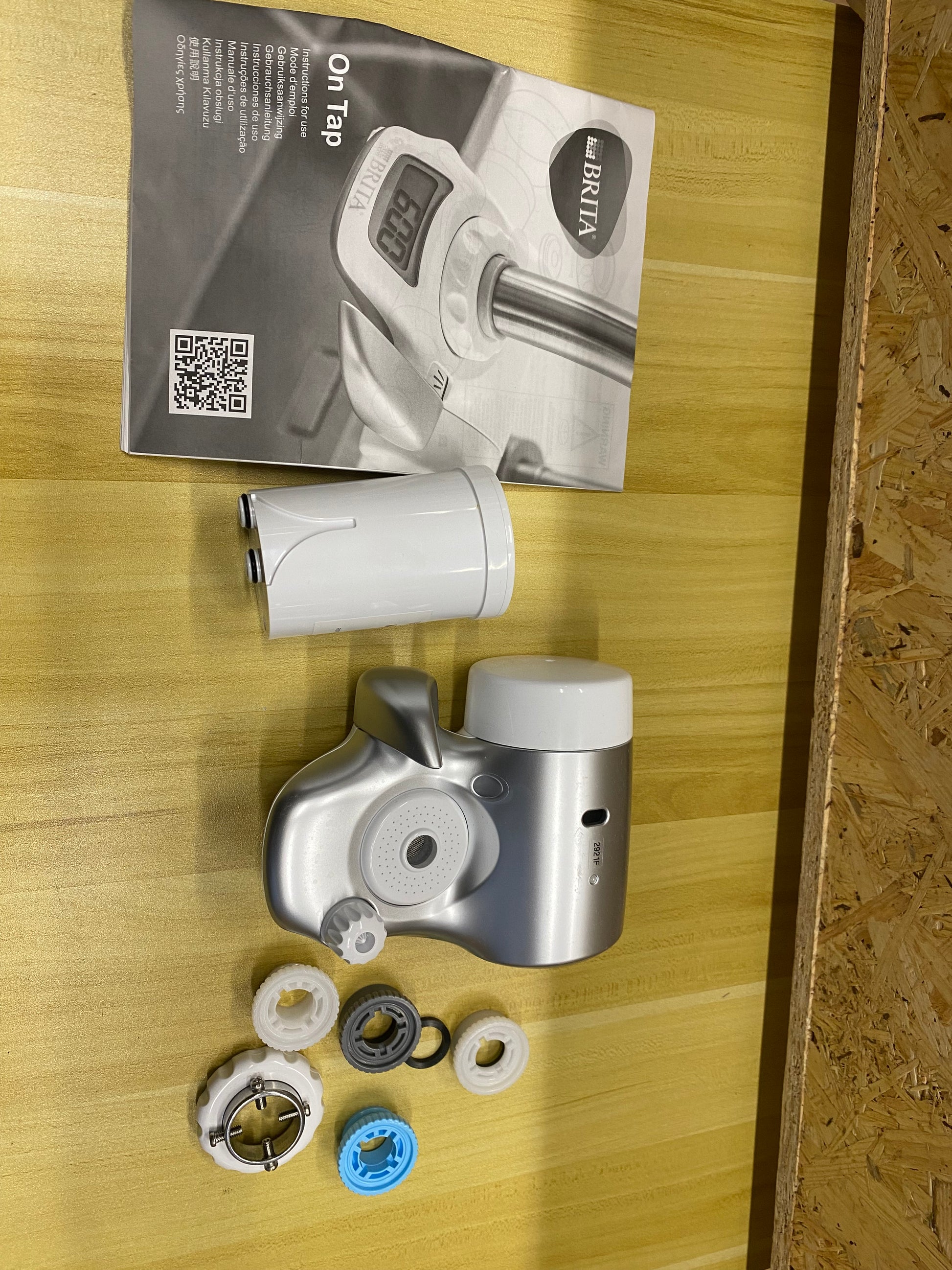 - Incluye: 1x sistema de filtración de agua del grifo BRITA ON TAP Pro V-MF, 1x cartucho filtrante ON TAP V-MF (600L), 5x adaptadores diferentes para la instalación