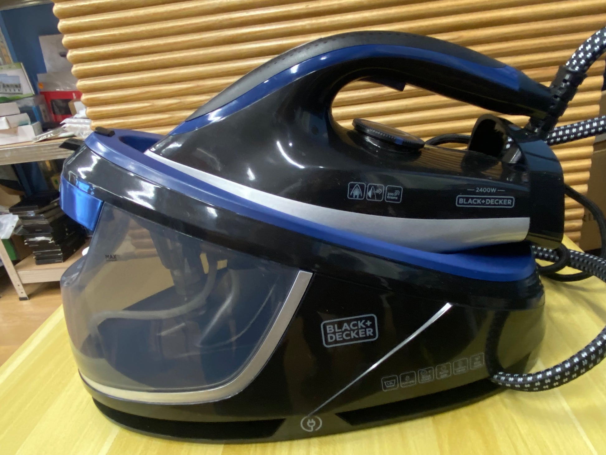- Golpe de vapor de 200g/min: Este centro de planchado cuenta con un golpe de vapor de 200g/min para planchar cualquier prenda de manera rápida y fácil; solo deberás aplicar golpes de vapor sobre las arrugas difíciles para que el vapor penetre en el tejido y lo ablande, pudiendo pasar a continuación la plancha caliente por encima y eliminándolas de una sola pasada