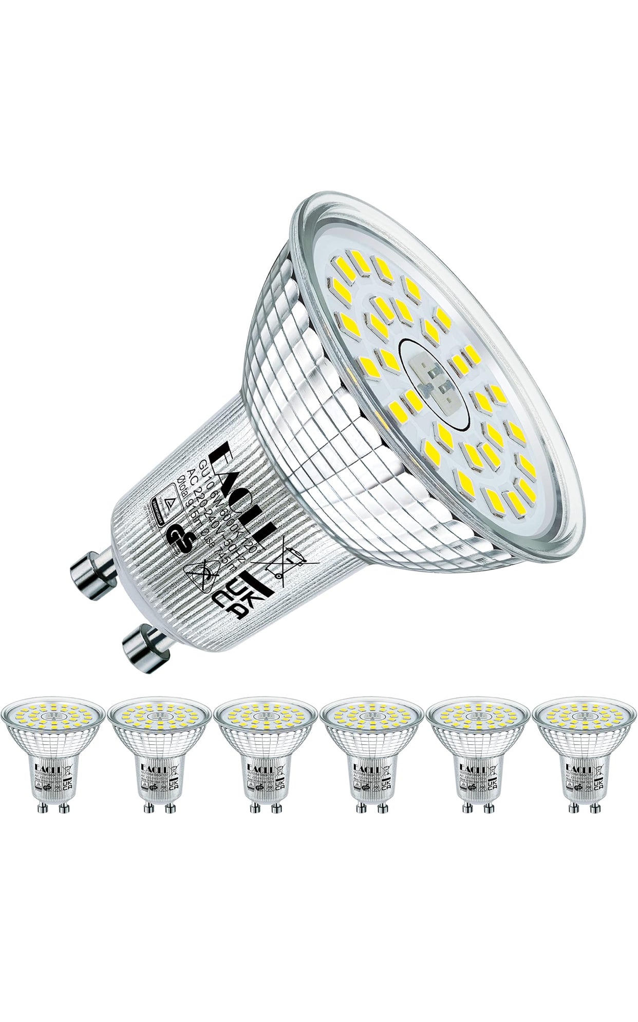 EACLL Bombillas LED GU10 Blanco Frio 6W Reemplaza 100W Halógena, Pack de 6