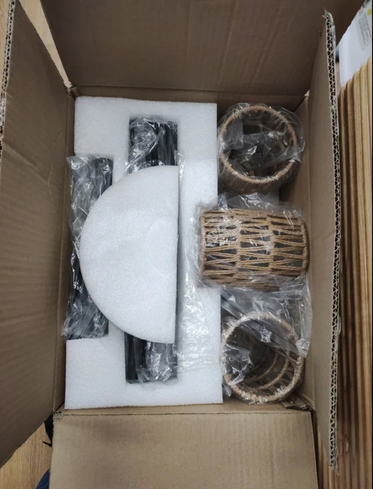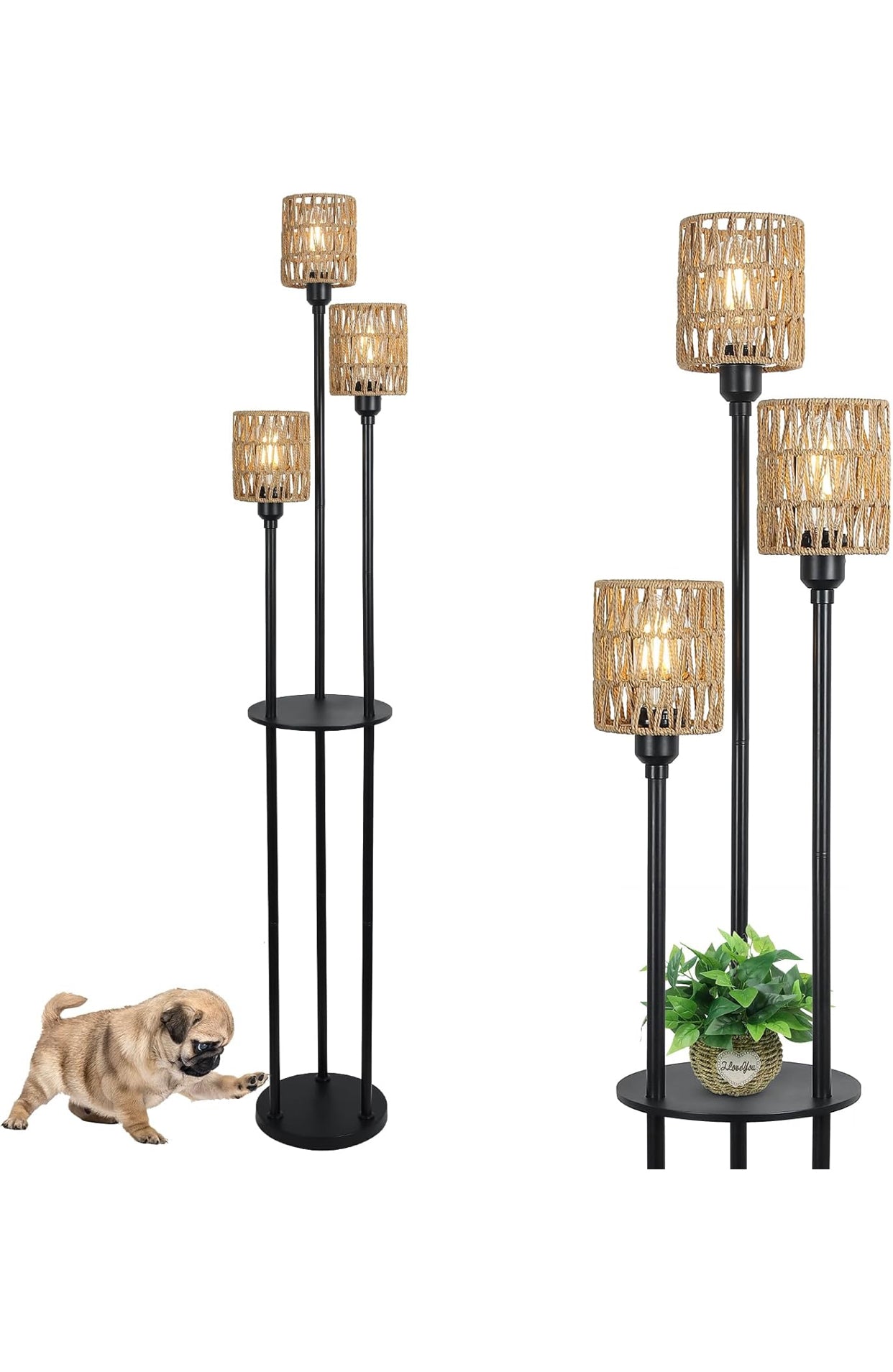 - Esta lámpara de pie boho consta de 3 pantallas de ratán natural tejidas a mano y estante acrílico. La combinación de elementos naturales hace que esta lámpara de pie sea perfecta para estilos de hogar bohemio, vintage e industrial. 3 postes de luz se fijan a la base de metal pesado para hacer esta lámpara de pie lo suficientemente estable, que está diseñado para evitar el vuelco y mantener a usted ya su familia segura en casa.