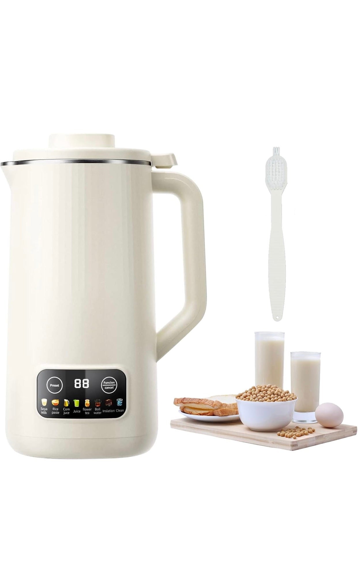 El juego para hacer leche de almendras incluye 1 máquina para hacer leche de soja, 1 cepillo de limpieza, 1 cable de alimentación de 0,8 m, 1 taza medidora, 1 manual de instrucciones, la capacidad es de 600 ml (20 oz), suficiente para 2 o 3 personas. Haga sus jugos, batidos, leches de nueces, leche de soya favoritos, leche vegetal maquina cualquier cosa que se le ocurra. Ya sea para uso personal o como regalo, esta lechera es una opción práctica y elegante.