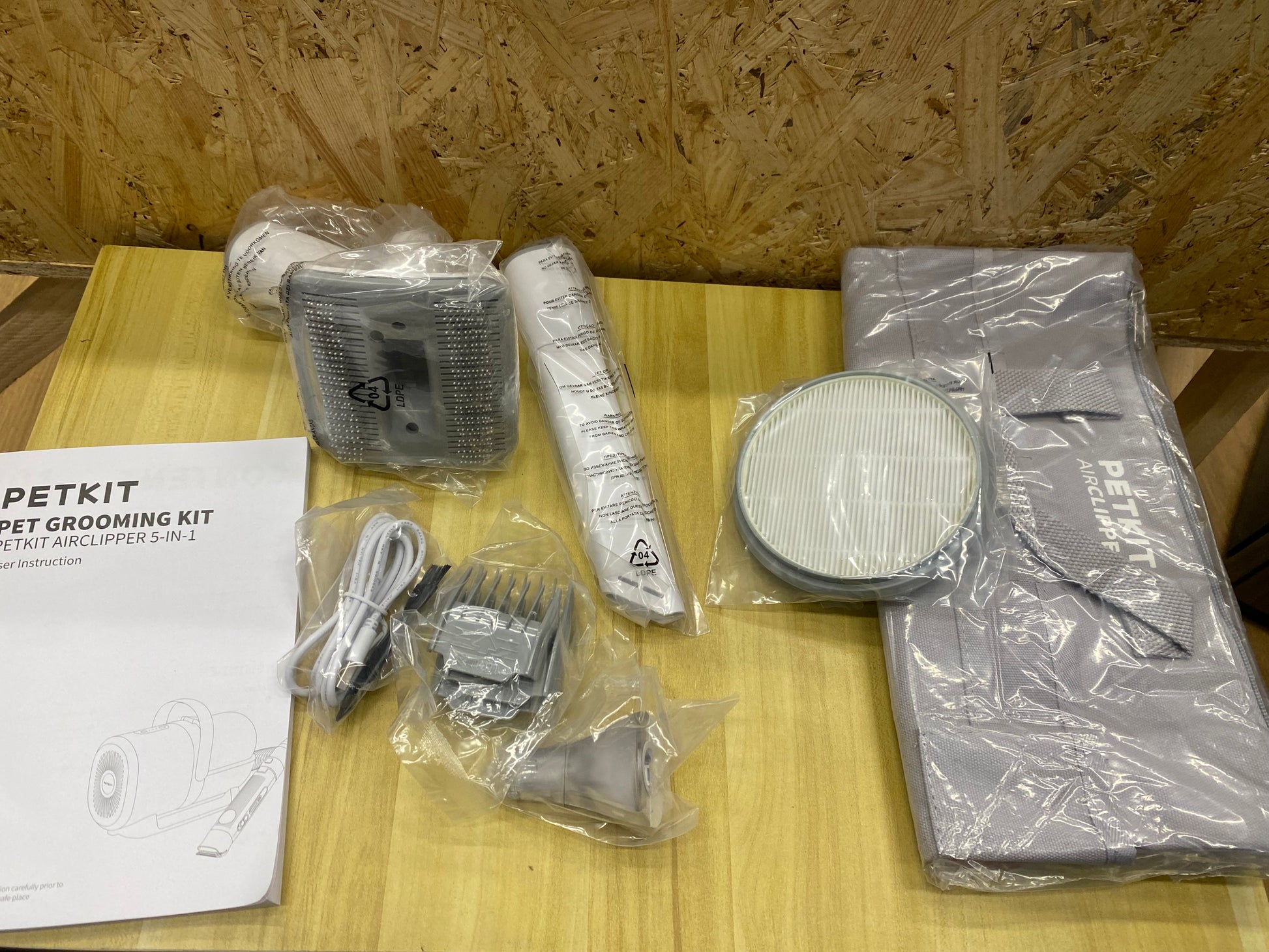 - El kit de peluquería para mascotas 5 en 1 PETKIT AIRCLIPPER incluye cepillo de peinado, peine depilatorio, podador de pelo corporal, podador de pies y cabezal de aspiración de boca estrecha. El aspirador pelos mascotas incluido tiene una potente succión para recoger la mayor parte del pelo de su mascota. Esta máquina para cortar pelo de perros le permite cepillar, recortar y aspirar en un solo paso.