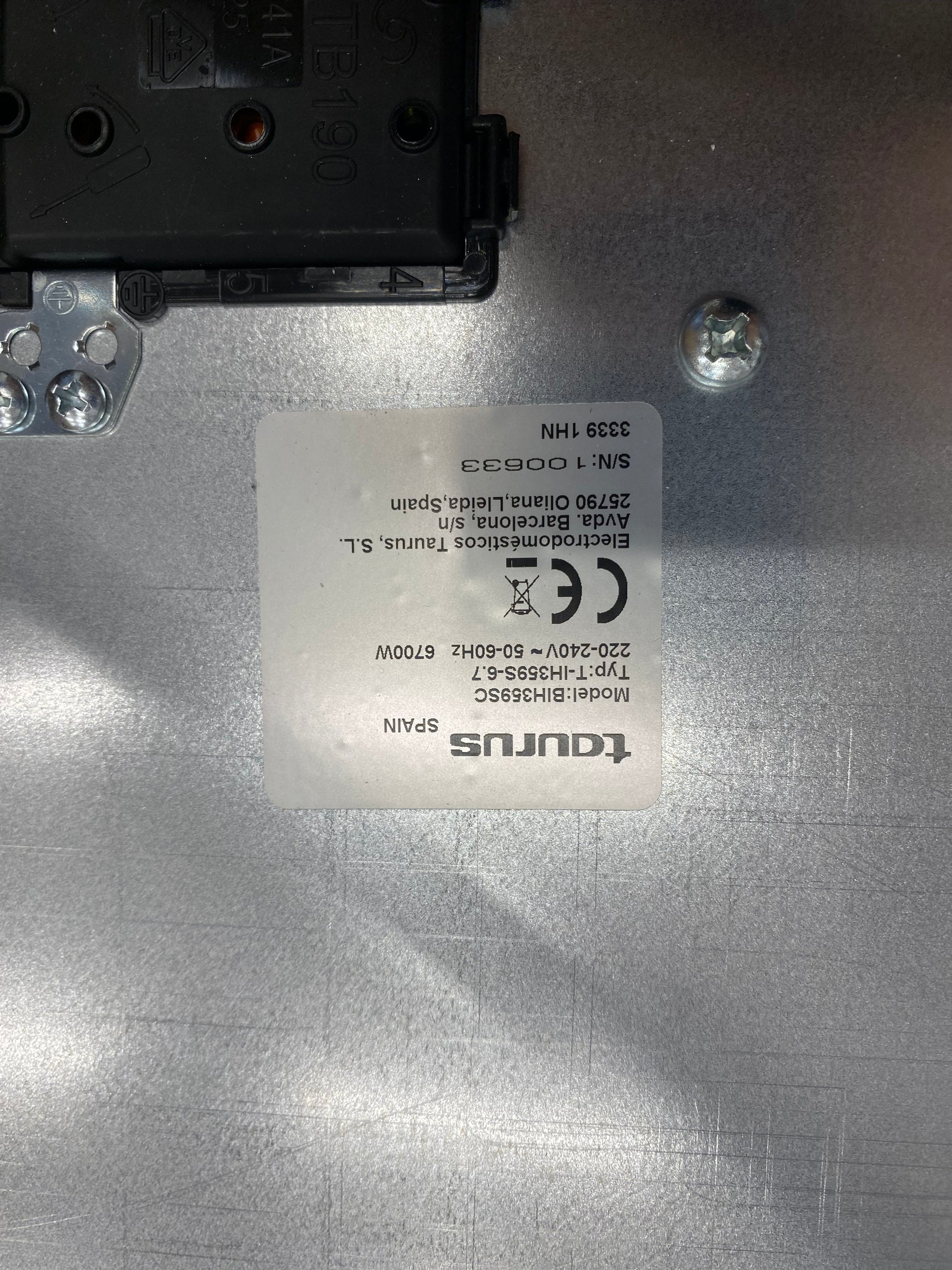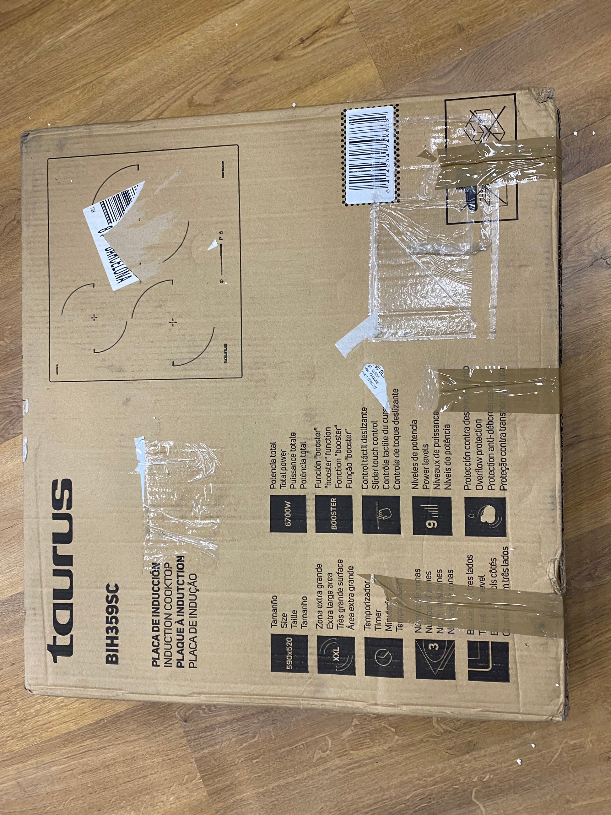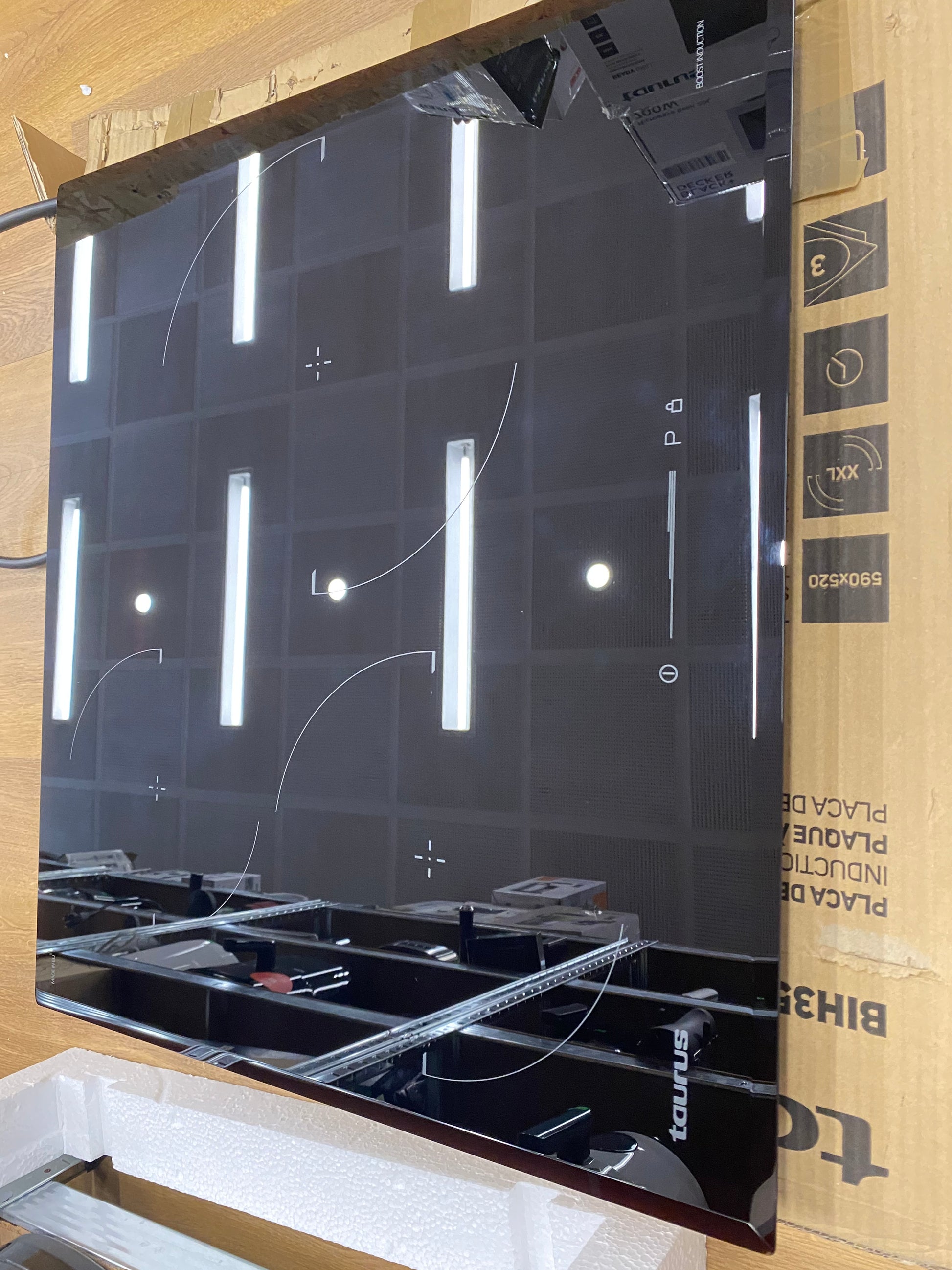 Placa de inducción TAURUS BIH359SC, 6700W, 3 zonas de cocción + PowerBoost, temporizador, A: 59cm.