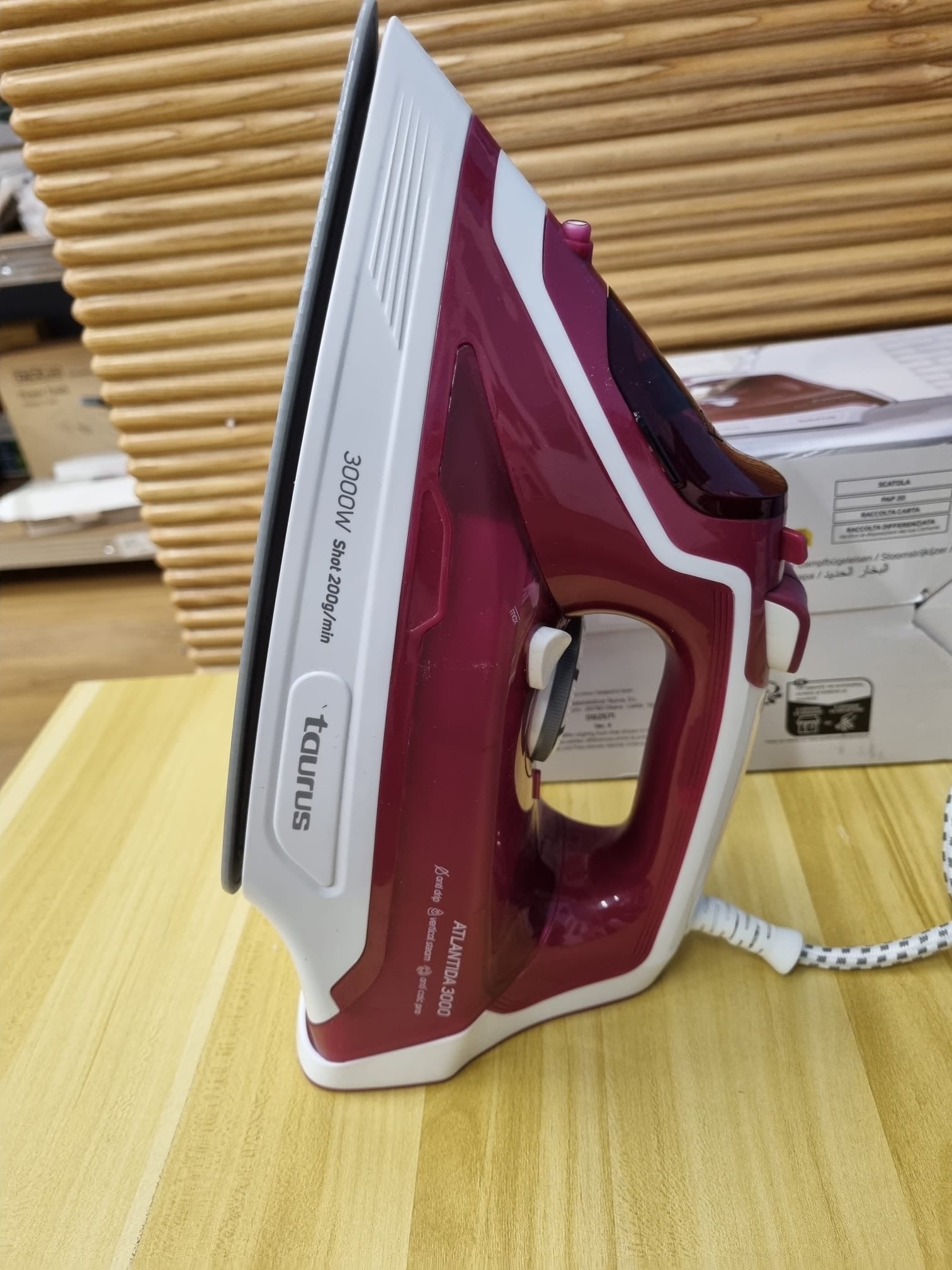 - Potencia extrema de 3000W, resultados en una sola pasada. Rápida puesta en marcha. Con regulador de temperatura que se adecúa a cada tipo de prenda y tejido.