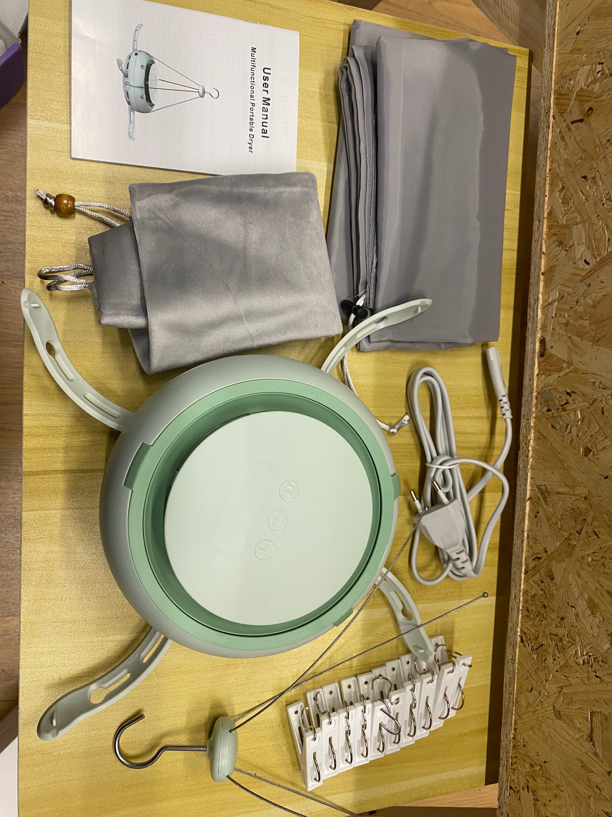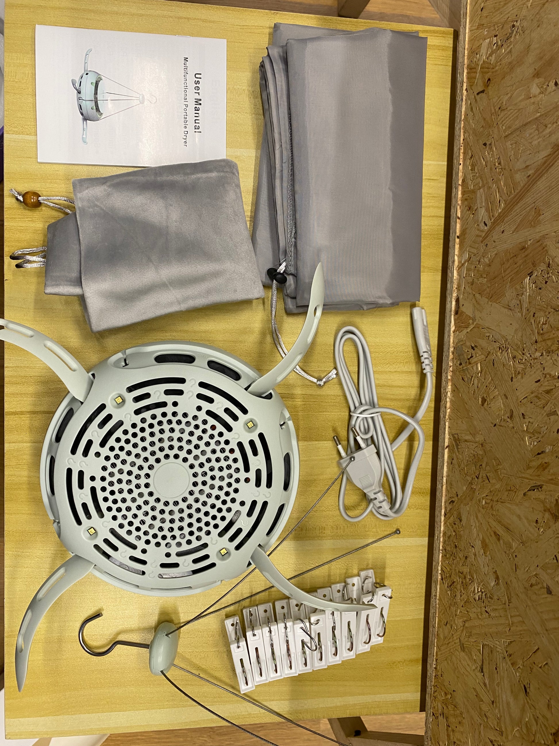 Con 3 modos de trabajo y 9 velocidades de viento, la secadora portátil se puede usar para secar trajes de baño, ropa de bebé, camisetas, ropa interior y abrigos. Puede usarse como ventilador en modo 1 (10w) sin calentador, puede usarse como secadora o calentador en modo 2 (450w) o modo 3 (750w) y esta secadora portátil tiene una función de temporizador que le permite para hacer esto Configure el tiempo para secar y esterilizar