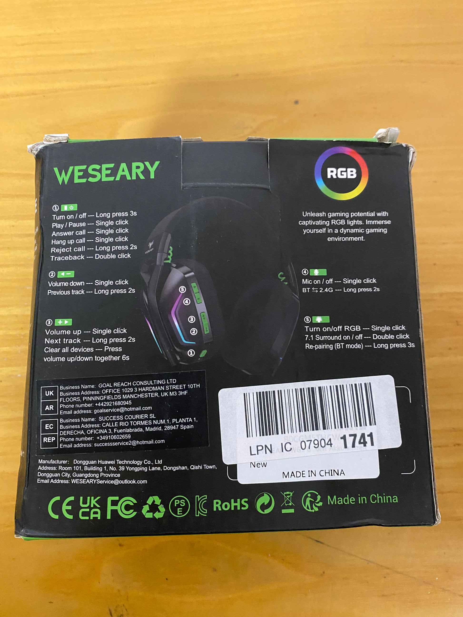 - Entra en un nuevo reino de excelencia auditiva con el auricular gaming inalámbrico WESEARY. El controlador de 50 mm con recubrimiento de titanio reproduce graves profundos y agudos claros, resaltando cada detalle, desde las voces y pasos de tus compañeros hasta los disparos. Con el modo de juego, sumérgete en un sonido envolvente estéreo 3D cinematográfico.